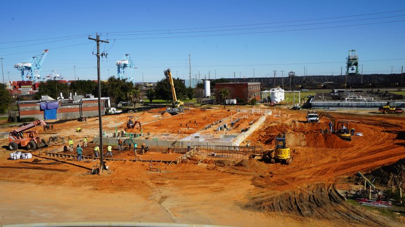 A new sludge dewatering facility is being constructed at the C.C. Williams Wastewater Treatment Plant. The new facility will have greater capacity, reliability and efficiency than the existing older facility. Increased dewatering efficiency means reduced costs in hauling sludge. Sludge from both the Williams and Smith WWTPs will be processed in the new state-of-the-art facility.
