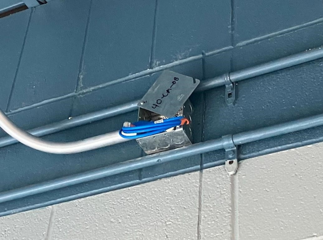 A new conduit in the sludge building with cables pulled